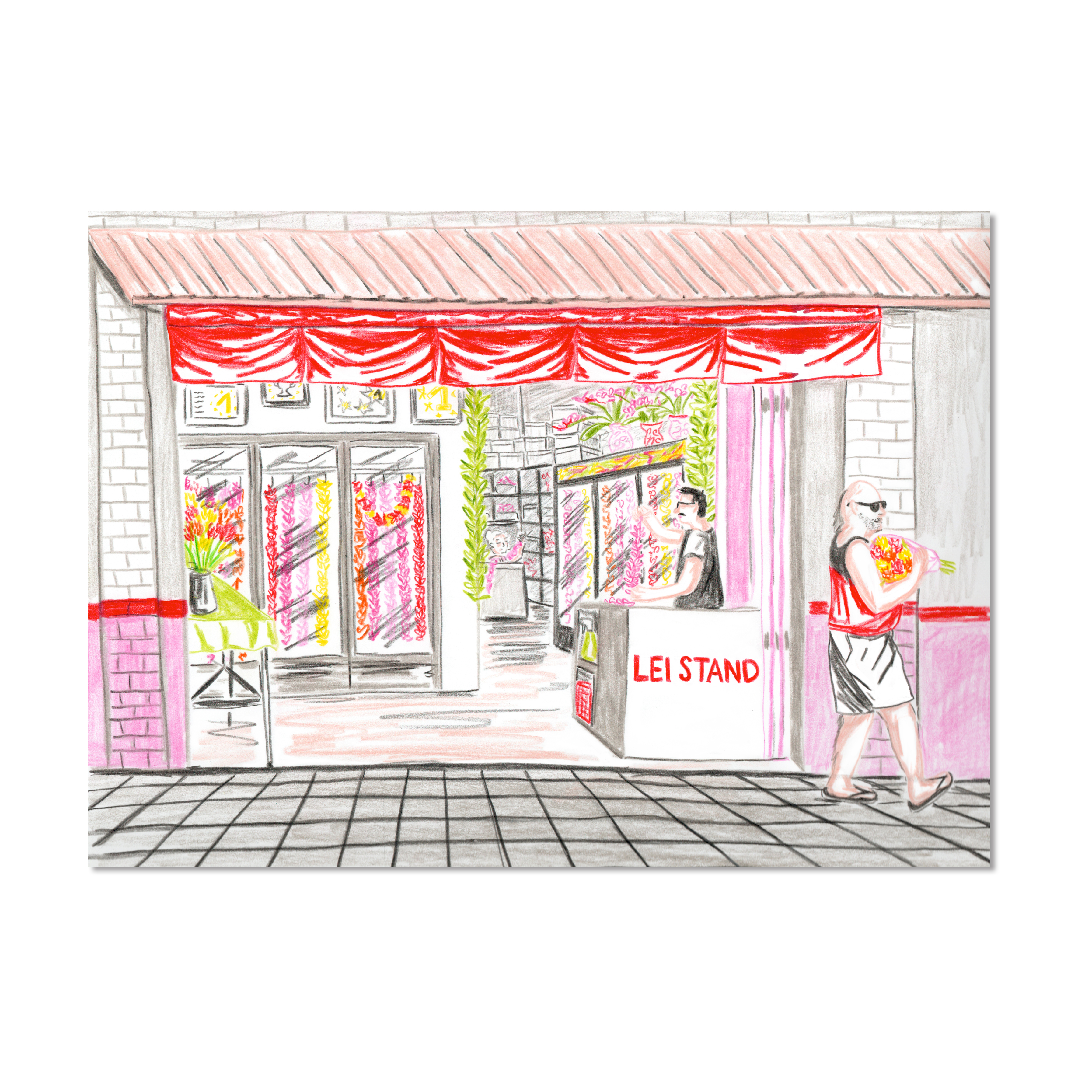 A custom drawing of the storefront of your business printed on postcards to sell or giveaway to your customers.