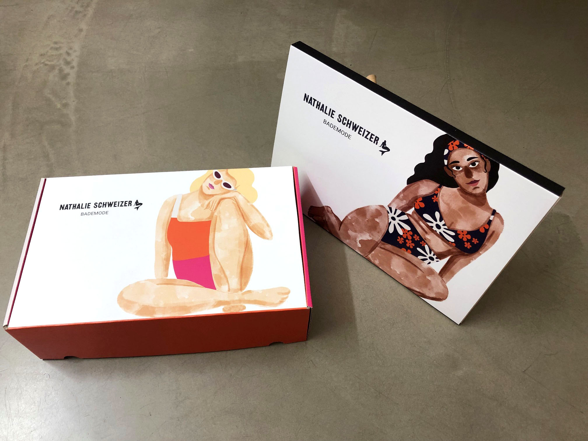Mailing boxes, poster and various illustrations for the swiss swimwear brand "Nathalie Schweizer".
